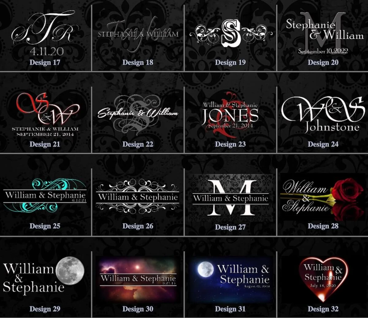 4. If there are colors involved, please let us know that too. DESIGN NOTE - we can add a splash of color to many of the designs. Think about having your names in color!